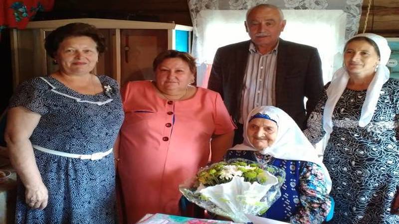 Кунаклар Зәйтүнә апаны гомер бәйрәме белән котлап, Россия Федерациясе Президенты Владимир Путин һәм район башлыгының котлау открыткаларын, чәчәкләр, күчтәнәчләр, бүләкләр тапшырдылар.