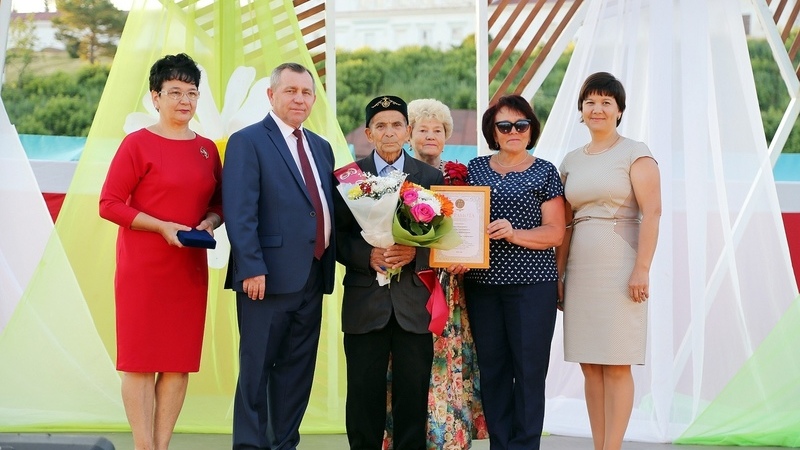 “Мәхәббәт һәм тугрылык өчен” медален тапшыру миссиясен район башлыгы Анатолий Иванов башкарды. Ул бәхетле әби-бабайга матур теләкләрен җиткерде, буләкләр тапшырды.