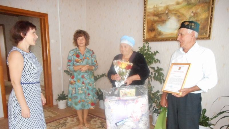 Аларны истәлекле бәйрәмнәре белән район башкарма комитеты җитәкчесе урынбасары Индира Сәхипова тәбрикләде, район башлыгының рәхмәт хатын һәм кыйммәтле бүләк тапшырды. Юбилярларга котлау сүзләрен шулай ук ГХАТ бүлеге җитәкчесе Гөлчәчәк Вәлишина, район ветераннар советы рәисе Нәҗип Миннеголов, “Бердәм Россия” сәяси партиясенең җирле бүлекчәсе башкарма комитеты җитәкчесе Гөлүсә Харисова җиткерделәр, ныклы сәламәтлек, иминлек һәм тагын бик күп еллар матур гомер кичерүләрен теләделәр.