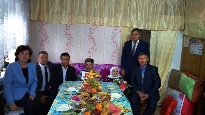 Юбилярны котларга дип район башлыгы урынбасары Наил Сабирҗанов , социаль яклау бүлеге башлыгы Алсу Гатиятуллина, җирлек рәисе Рафил Җәләев, “Кама” хуҗалыгы җитәкчесе Рәкыйп Нәҗипов, Пыжмара мәктәп директоры, “Хезмәт” газетасы журналисты килделәр. Рәсәй Президенты Владимир Путинның Котлау хаты белән район җитәкчесе исеменнән җылы юрган тапшырдылар. Килгән кунакларның изге теләкләре, мактау сүзләре өлкәннәрнең күңеленә бигрәк тә хуш килде, бабай елап та алды. Рәшит абый белән Мөнәвәрә апа өйләнешкәнче 6 ел йөргәннәр, аннан Рәшитен армиягә озаткан, кайткач 1952 елның 10 декабрендә кавышып бер гаилә булып яши башлаганнар һәм шуннан бирле 66 ел бергә. Тормышларын тулыландырып 5 кыз һәм 1 малай алып кайталар. Балаларын үзләре кебек тырыш, хезмәт сөючән, ярдамчел итеп тәрбиялиләр алар. Рәшит абый белән Мөнәвәрә апа озак еллар колхозда эшләп , лаеклы ялга шуннан китәләр. Бүгенге көндә Шакировлар төп нигездә икесе генә гомер кичерәләр. Шул ук авылда яшәүче кызлары Фәридә эти-энисен тәрбияләп, кадер-хөрмәт күрсәтеп тора. 14 онык, 9 оныкчыклары- эби-бабайның зур куанычлары булып торалар. Рәшит абый белән Мөнәвәрә апа кебек тигез, җәмгыятькә игелекле балалар үстергән гаиләләр районыбыз өчен шатлык инде ул.