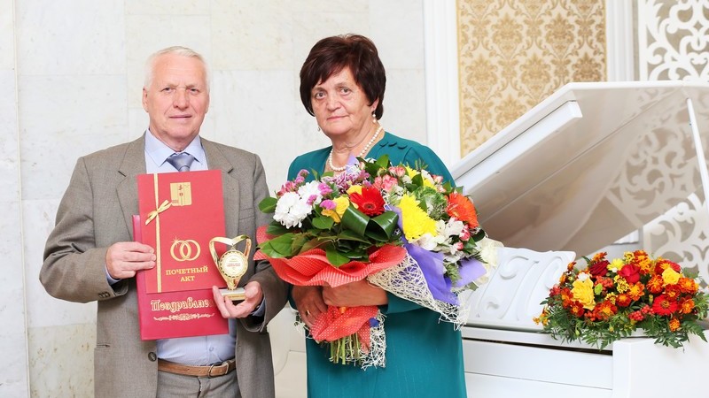 ГХАТ идарәсе белгечләре Вячеслав Дмитриевич һәм Мария Ивановнага нык сәламәтлек һәм озын гомер теләп, Түбән Кама муниципаль районы башлыгы, Түбән Кама шәһәре мэры Айдар Рәис улы Метшин исеменнән котлау хаты, ГХАТ Идарәсенең Мактау актын һәм юбилей медален тапшырдылар. Фалиннар Түбән Кама муниципаль районы ГХАТ Идарәсенең Мактау китабына кул куйдылар.