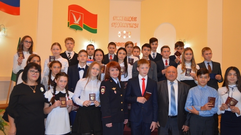 Сәхнәгә күтәрелгән бер-бер артлы ундүртяшьлекле балалар дулкынлануларын яшермәде-аларны аңларга да була, ни дисәң дә, мондый вакыйга тормышта бер генә тапкыр була. Ә Азнакай җирле бүлекчәсе "Бердәм Россия" исемендәге партиясе паспорт өчен тышлыклар бүләк итте.