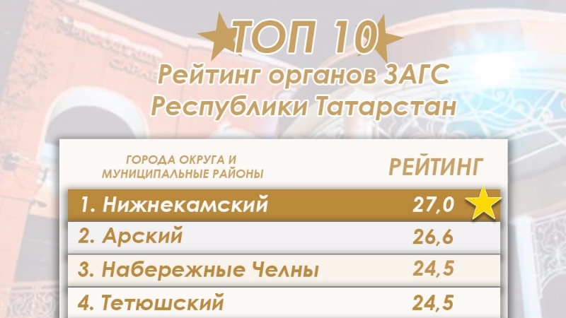 Татарстанның ГХАТ органнары өчен махсус эшләнгән индикатив мониторинг системасы нәтиҗәләре буенча Түбән Кама районы 27,0 балл җыйды, шул рәвешле, лидерлык позициясен алды.