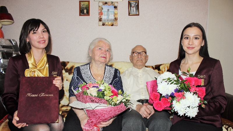 Юбилярларның исемнәре ГХАТ Идарәсенең Мактау китабына кертелде. Аларга вакыйга истәлеге итеп ГХАТ Идарәсенең юбилей медале тапшырылды. Юбилярларны котларга, озак еллар буена гаилә башлыгы Матвей Андреевич хезмәт иткән, «Түбән Кама нефть химиясе» профсоюз оешмасы вәкилләре килде.