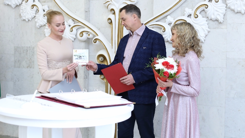 Тубəн Кама муниципаль районы ГХАТ идəрəсе хезмəткəрлəре юбилярларга иң изге теләкләр белән Мактау грамотасы һәм Алтын туйларына чакыру тапшырдылар.