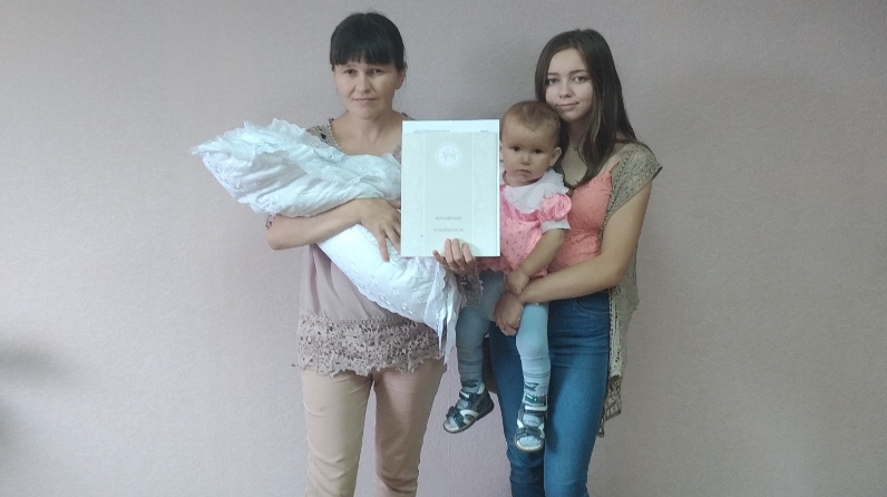 ГХАТ бүлегенең җитәкчесе Н.Н.Җиһаншина чын күңелдән бәхетле эти-энине котлап беренче дэулэт документы - туу турында таныклык, Татарстан Республикасы Президенты Р. Н. Миңнеханов исеменнән котлау открыткасын тапшырды.