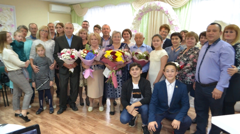 Бүген дә, аларның төп теләге - туган йорт учагын саклап, балаларның уңышларына куанып, иминлектә һәм тынычлыкта яшәү. Юбилярлар ГХАТ бүлегенең Мактау китабына имзаларын куйдылар. Юбилярларны бу матур вакыйга белән котларга балалары, оныклары, туганнары, шулай ук хөрмәтле кунаклар килде. ТОС «Центральный» рәисе Прахов Р.А. юбилярларны котлап бүләкләр тапшырды, Арча муниципаль районының хатын-кызлар оешмасы рәисе Гатаулллина А.М. чәчәкләр һәм ГХАТ бүлеген символик бүләген - сәгать тапшырып, юбилярларга сәламәтлек, иминлек, бәхет теләде.