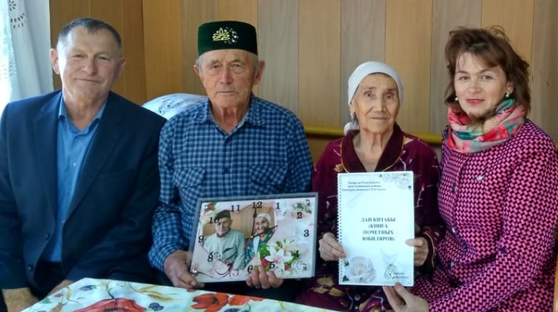 Бергә озын-озак юл үтсәләр дә, бу гаиләне бәйләгән җылы хисләр әле дә саклана. Тәбрис Әсфәндиярович юбилярларга авыл җирлеге һәм ЗАГС бүлеге исеменнән истәлекле бүләкләр һәм котлау адреслары тапшырды.