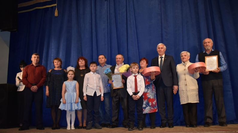 Алтын юбилярлар Югары Ослан районының " Почетлы юбилярлар бергә тормыш юлында» китабына кулларын куйдылар. Сергей Осянин аларны котлап Югары Ослан муниципаль районы башлыгының Рәхмәт хатларын һәм истәлекле бүләкләр тапшырды. Әти-әниләрен, әби-бабаларын алтын туйлары белән котлау өчен сәхнәгә чыккан юбилярларның күп санлы балаларын һәм оныкларын күрү бик күңелле булды.
