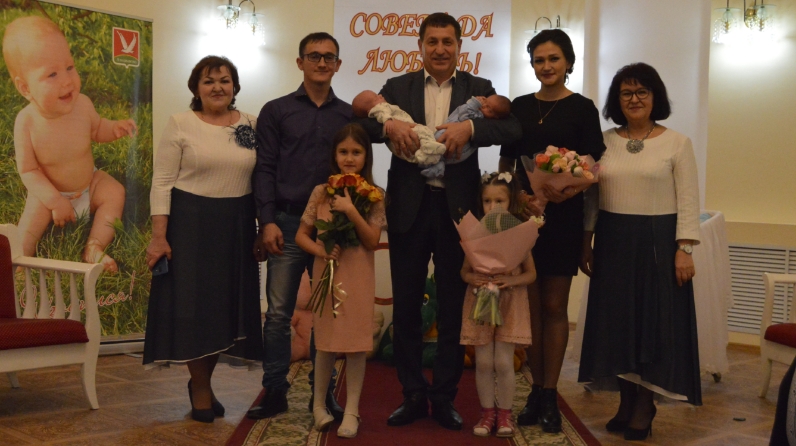 Игезәкләрнең туу турында таныклыгын тапшырганда, Айдар Хәләфетдин улы яшь гаиләгә тәрбияләүдә уңышлар теләде һәм: «Балаларыгыз тату һәм гаиләгездә сәламәт һәм бәхетле булып үссен. Сезнең гаилә районыбызның күп кенә гаиләләре өчен үрнәк булып тора. Азнакай районы, Президент һәм федераль программалар ярдәмендә, соңгы елларда нык үзгәрде. Матур яр буйлары, парклар һәм скверлар, бассейннар һәм стадионнар барлыкка килде, мәктәпләр һәм балалар бакчалары ремонтланды, яңа мәктәп һәм балалар бакчасы ачылды. Сәламәт тормыш алып барыр өчен барлык шартлар да тудырылган», диеп сүзен йомгаклады.