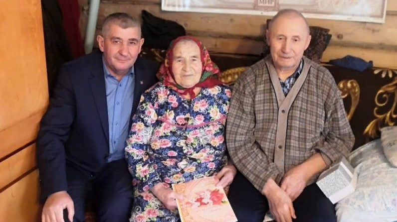 Әлеге истәлекле көндә юбилярларга балалары, оныклары матур теләкләрен җиткерделәр, шулай ук авыл җирлеге башлыгы Р.И. Хәкимов, район башлыгы Р.Х. Сафиуллов исеменнән котлау открыткасы, озын гомер, иминлек, туганнарының һәм якыннарының игътибарын тоеп яшәүләрен теләп, истәлекле сувенир тапшырды.
