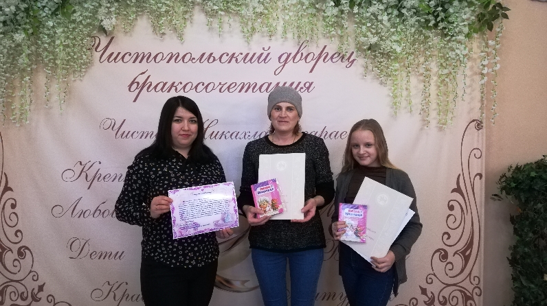 ГХАТ бүлеге хезмәткәрләре бәхетле әни Мария Петровнага туу турында таныклыклар белән бергә символик бүләкләр, ГХАТ бүлеге исеменнән котлау открыткасы һәм Татарстан Республикасы Президенты исеменнән котлау папкасы тапшырдылар. Юшковлар гаиләсенә иминлек, муллык, тынычлык һәм уңышлар, шулай ук икеләтә түземлек һәм аңлау теләделәр.