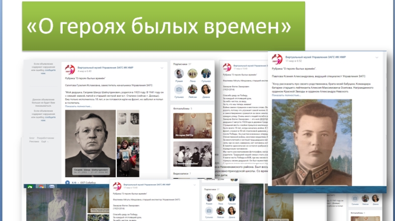 Атна саен ВКонтакте социаль челтәрендэ Түбән Кама муниципаль районы ГХАТ Идарәсенең «виртуаль музеенда» ГХАТ белгечләре үзләренең туганнарының – Бөек Ватан сугышы ветераннарының фотосурәтләре һәм тарихлары белән уртаклаштылар.