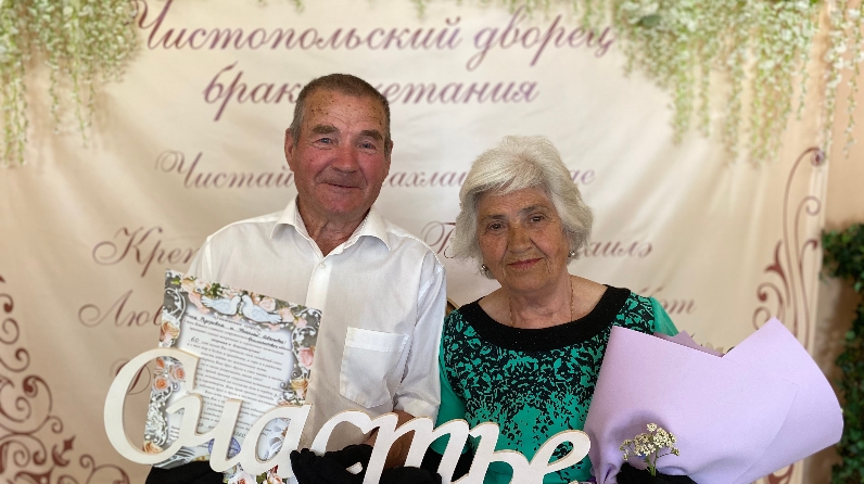 Бүген Николай Иванович һәм Нина Федоровна брилиант юбилеен билгеләп үтәләр. 60 ел элек алар гаилә берлеген ныгытып, шул вакыттан бирле шатлыкта-шатлыкта «кулга кул тотынып " тормыш юлыннан баралар. Чистай Никахлашу сарае традициясе буенча, ирле-хатынлы итеп игълан ителгән минутларны искә төшерделәр.