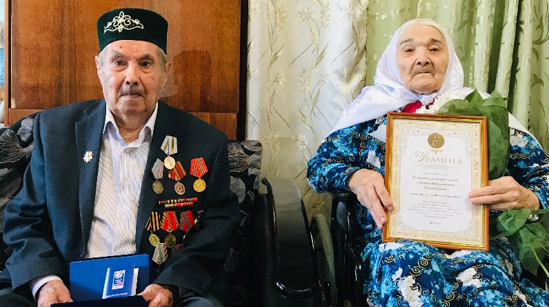 Күркәм бәйрәм көнендә 69 ел бергә яшәгән, төрле вакыйгалар кичергән, әмма мәхәббәт һәм үзара аңлашуны саклап калган сугыш ветераннары Гыйльметдин абый һәм Җәвирә апа Хәбибуллиннар гаиләсе «Мәхәббәт һәм тугрылык өчен» медале белән бүләкләнде.Гыйлметдин абый 1927 елда Нөнәгәр авылында дөньяга килә, 12 яшеннән үк ятим кала. 1944 елда армия сафларына алына, 1948 елда гына Суслонгер лагеренең ачлыгын, авырлыкларын үзендә татып, язмыш тарафыннан тагын да чыныктырылган булып, Германия җирләреннән туган авылына әйләнеп кайта. 1951 елда ышанычлы, тәвәккәл, җаваплы ир-егетне авыл советы рәисе вазыйфасына билгелиләр. Ике йөрәкнең очрашу мизгеле дә нәкъ шушында эшли башлагач була. Бу вакытта ишле гаиләдә туып, 2 яшеннән ятим калган, тормышның күп кенә авырлыкларын күргән Җәвирә апа фермада терлек карый. 1951 елда исә, шушы уңган, чибәр авыл кызы белән Гыйлметдин абый кулга кул тотышып, тормыш юлларын бергә дәвам итәләр. Озак көттерми бер-бер артлы 6 бала туа. Гаилә учагы җылысын татып, чын гаилә үрнәген күреп үскән балалар үзләре дә инде әти-әни, әби-бабай булу бәхетенә ирешкән. Бүгенге көндә әлеге нәселне 13 онык, 13 оныкчык тулыландыра.