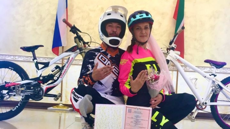 "Кышын да, җәен дә велосипедта", - ди алар турында матур һәм онытылмас тантананы теркәгән ЗАГС бүлеге җитәкчесе Гөлнара Гайфуллина.