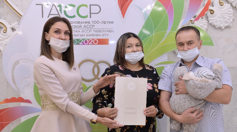 Бала туу турында таныклык һәм Татарстан Республикасы Президенты Рөстәм Нургали улы Миңнехановның котлау адресын тапшырганда, ГХАТ идарәсе белгечләре аларга яхшы ата-аналар булырга, үз улларын сакларга һәм яратырга дигән теләкләр теләделәр.