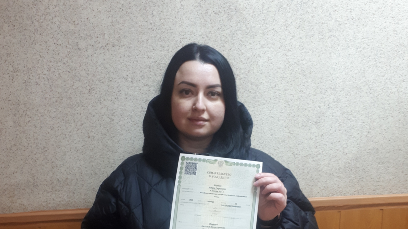 Туу турында таныклык һәм Татарстан Республикасы Президенты Р.Миңнеханов исеменнән котлау сүзләрен бүлек хезмәткәрләре бәхетле яшь әнигә Натальяга тапшырдылар. Яңа туган сабыйның гаиләсенә бәхет һәм иминлек, ә сабыйга һәрвакытта да беренче булуын телибез!