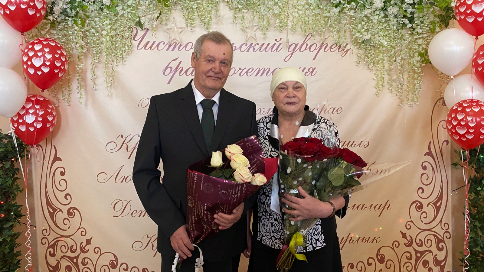 Нәкъ 50 ел элек алар гаилә берлеген ныгытып, шатлыкта-шатлыкта «кулга кул тотынып " тормыш юлыннан баралар. Чистай Никахлашу сарае традициясе буенча, ирле-хатынлы итеп игълан ителгән минутларны искә төшерделәр. Юбилярлар өчен тагын Мендельсон маршы яңгырады. Ирле-хатынлы юбилярларның истәлекле китабына кул куйдылар.