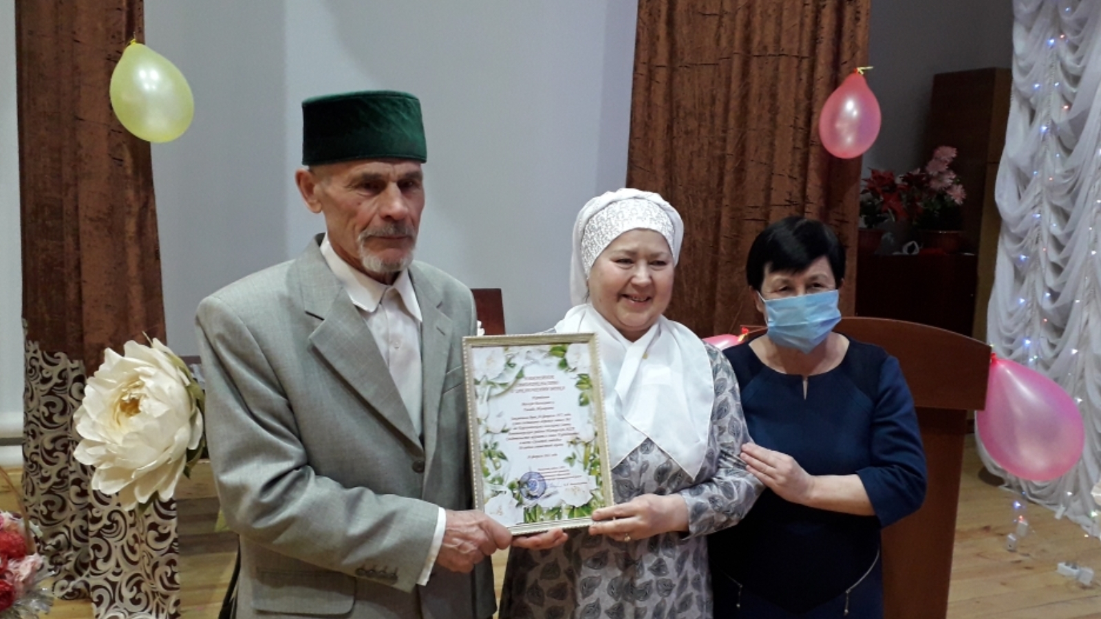 Татарстан Республикасы "Лениногорск муниципаль районы" муниципаль берәмлеге башкарма комитеты ГХАТ бүлеге җитәкчесе исеменнән юбилярларга Юбилей таныклыгы тапшырылып нык сәламәтлек, озын гомер, елмаюлар һәм якты мизгелләр теләнде.
