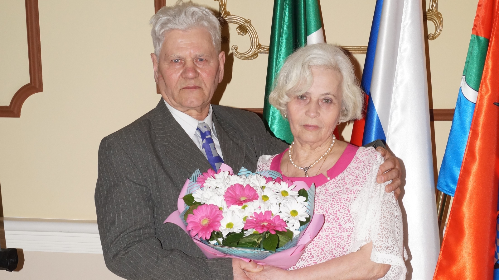 Бу истәлекле көнне алар балалары һәм туганнары исеменнән котлаулар кабул иттеләр. Бөгелмә муниципаль районы башлыгы исеменнән юбилярларга котлау хаты һәм чәчәкләр тапшырылды. Юбилярларның исемнәре Бөгелмә районының иң яхшы гаиләләре китабына кертелде.