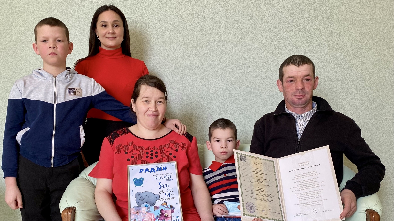 Уллары Радик тугач, Васильевлар куп балалы гаилә статусына ия булдылар. Абыйлары Руслан һәм Адел энеләренең дөньяга аваз салуын бик көтеп алдылар.