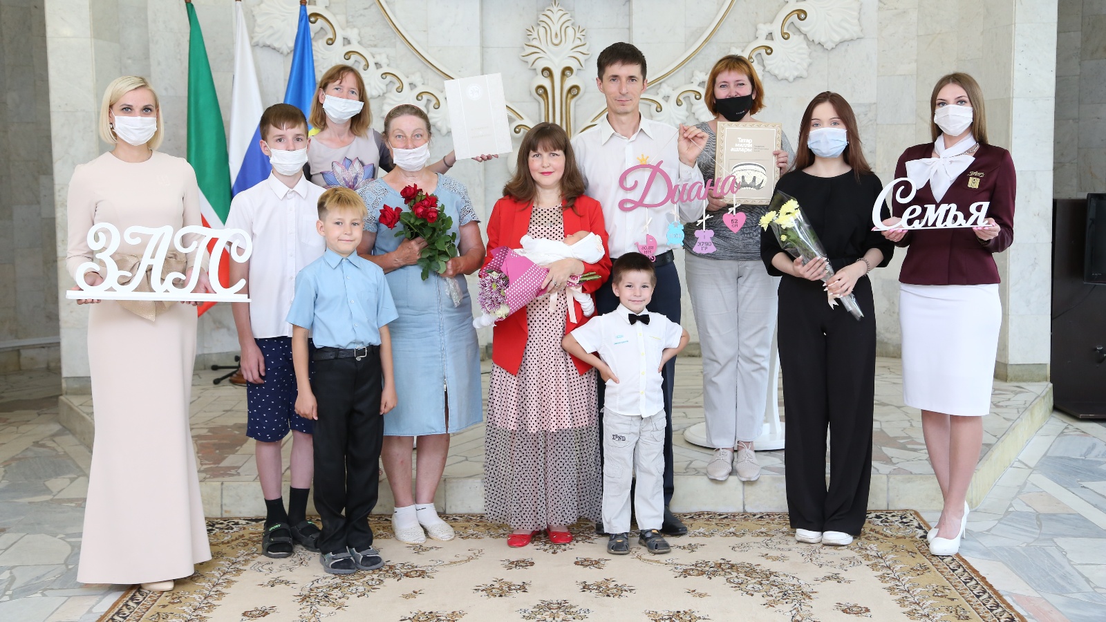 ГХАТ идарәсе белгечләре гаиләдә кыз бала тууы белән котладылар, Татарстан Республикасы Президенты Рөстәм Нургали улы Миңнехановның котлау хатын һәм «Түбән Кама хатын-кызлары» муниципаль берәмлеге исеменнән котлау сүзе, татар милли ашлары рецептлары язылган истәлекле китап тапшырдылар.