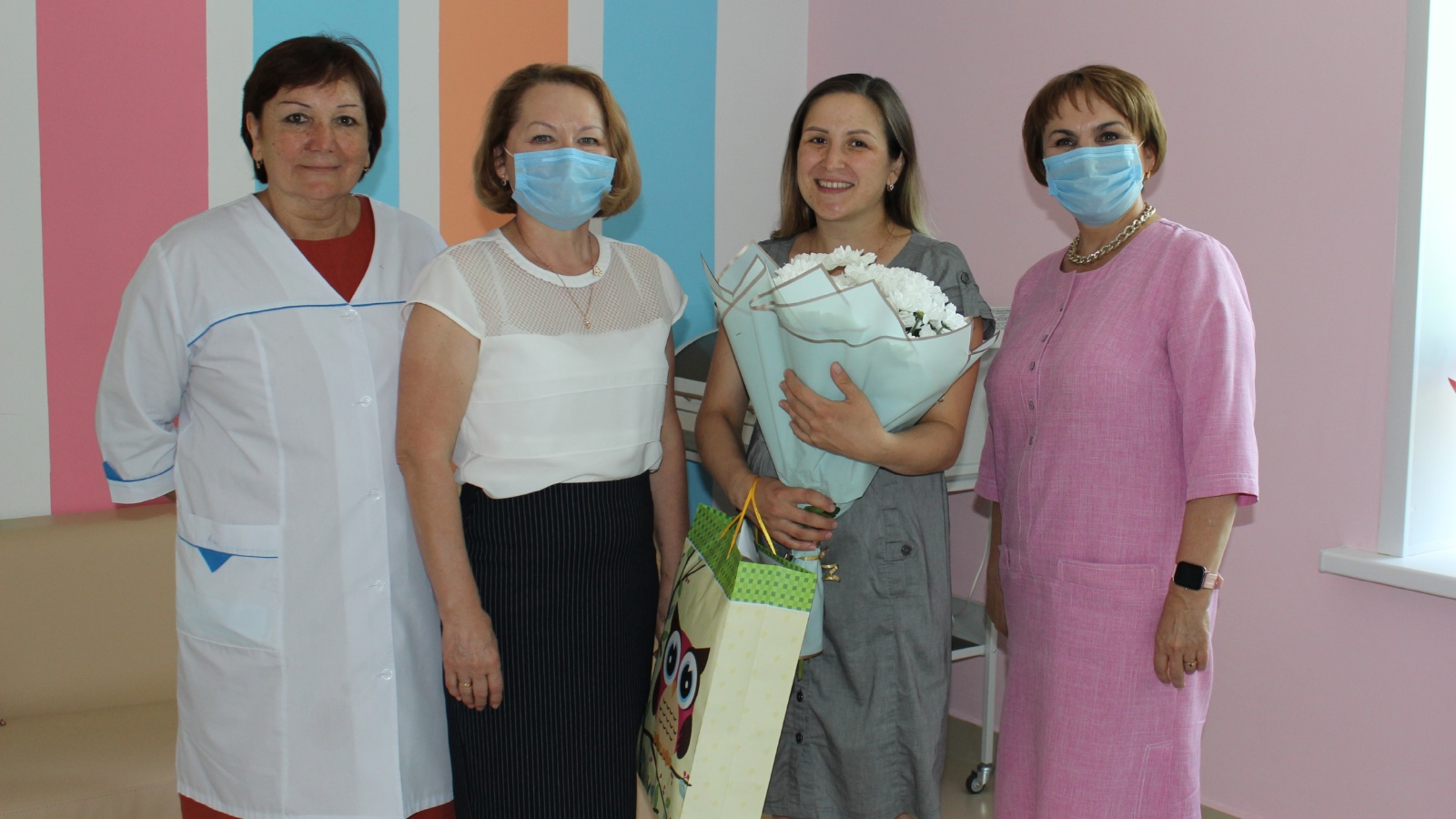 Бала тудыру йортында яшь әнине район башкарма комитеты җитәкчесенең социаль мәсьәләләр буенча урынбасары Ильмира Илдус кызы Хөснуллина, ЗАГС бүлеге җитәкчесе Сирена Тимерхан кызы Мөрсәлимова, баш табиб урынбасары Әлфия Шамил кызы Макаримова котладылар. Илүсә Вәсил кызы бала тудыру бүлегенең барлык персоналына һөнәри осталыклары һәм игелекле мөнәсәбәте өчен рәхмәт белдерде.