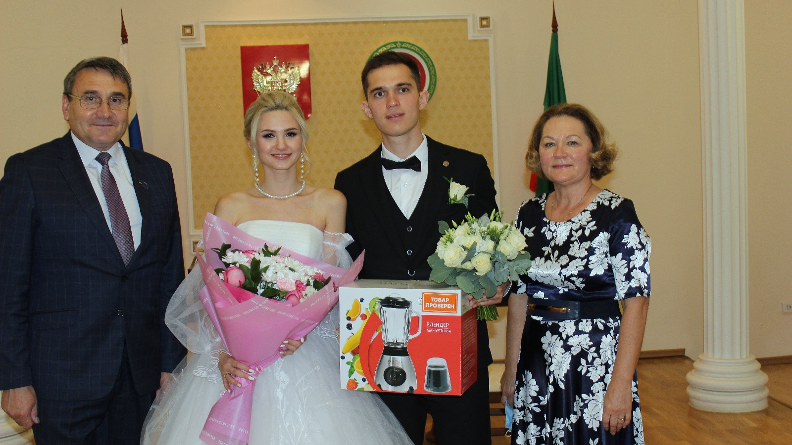 Баулы муниципаль районы башлыгы урынбасары Р.Г.Хамидуллин яшь парларны гаилә корулары белән котлады һәм бүләк, чәчәк бәйләме тапшырды. ГХАТ бүлеге җитәкчесе С.Т.Мурсалимова никахны теркәү турында таныклык тапшырды. Кунаклар яшь гаиләгә тормышларының һәрвакыт наз, бәхет, мәхәббәт белән тулып торуын теләделәр.