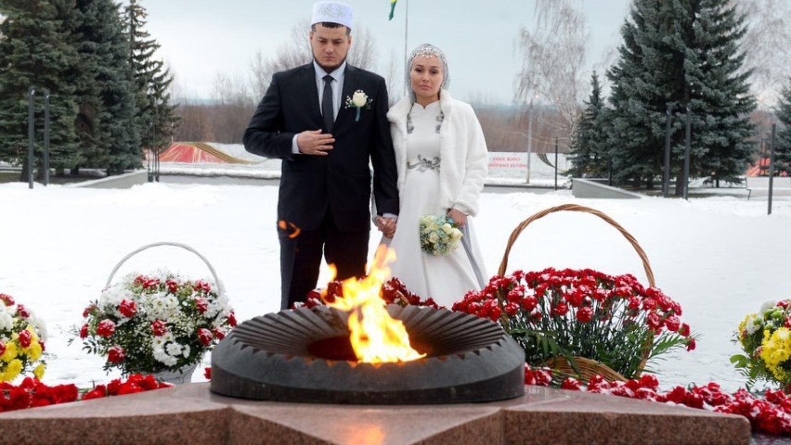 Бу көнне никах теркәү тантанасы алдыннан булачак ирле-хатынлы Мингазов Руслан һәм Вәлиева Әлфия Мәңгелек утка чәчәкләр салдылар. Алар сугыш хәрәкәтләрендә һәлак булган һәм исемнәре билгесез булган Совет һәм Россия сугышчыларының сугышчан батырлыгын, үлемсез батырлыгын искә алдылар.