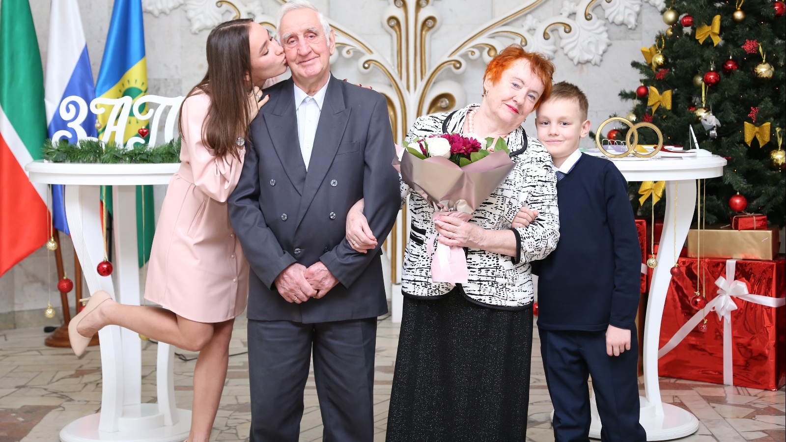 11 гыйнвар көнне ГХАТ идарәсе белгечләре юбилярларга Мактаулы акт һәм истәлекле китаплар тапшырдылар. Никахлашу сараенда традиция буенча, ир белән хатынның исемнәре мактау китабына кертелде.