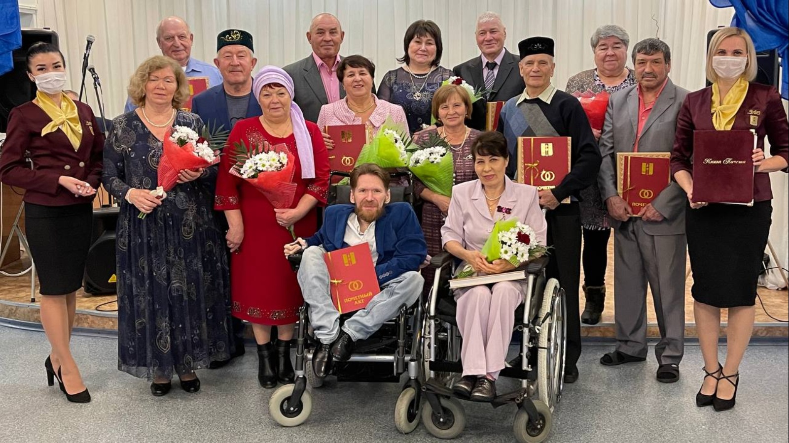 Түбән Кама никахлашу Сарае белгечләре гаилә парларына Мактаулы актлар һәм истәлекле бүләкләр тапшырдылар. Зал алкышлар астында юбилярларның исемнәре ГХАТ Идарәсенең Мактау китабына кертелде.