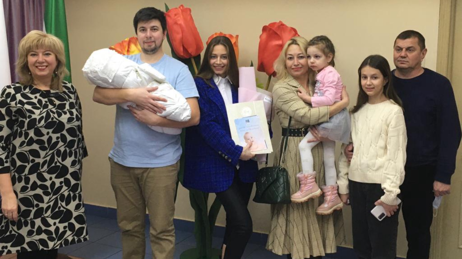 Фотографиядә – яңа туган Микелланың тантаналы очрашуы. Сабый – Максим һәм Мария Крюковларның икенче кызлары.