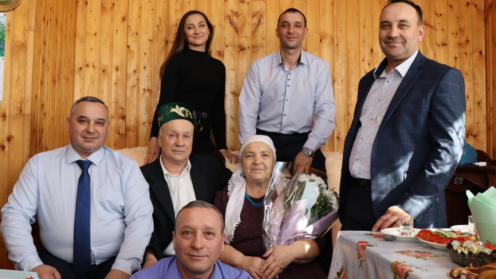 Айнутдиновларны гаилә бәйрәме, бергә яшәүләре белән котларга район башкарма комитеты җитәкчесе урынбасары Илмир Измайлов, авыл җирлеге башлыгы Рәфыйк Җамалетдинов килделәр. Алар район башлыгы исеменнән бүләкләр, чәчәкләр һәм котлаулар тапшырдылар.