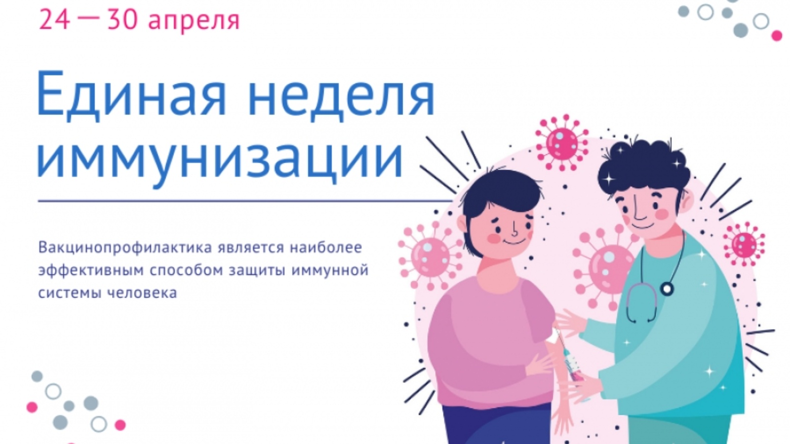 Россия Федерациясендә Бердәм иммунизация атнасы кысаларында Профилактик прививкаларның милли календаре нигезендә халыкны планлы иммунизацияләү үткәреләчәк. Шулай ук халыкны яңа коронавирус инфекциясенә каршы иммунизацияләү дә дәвам итәчәк.