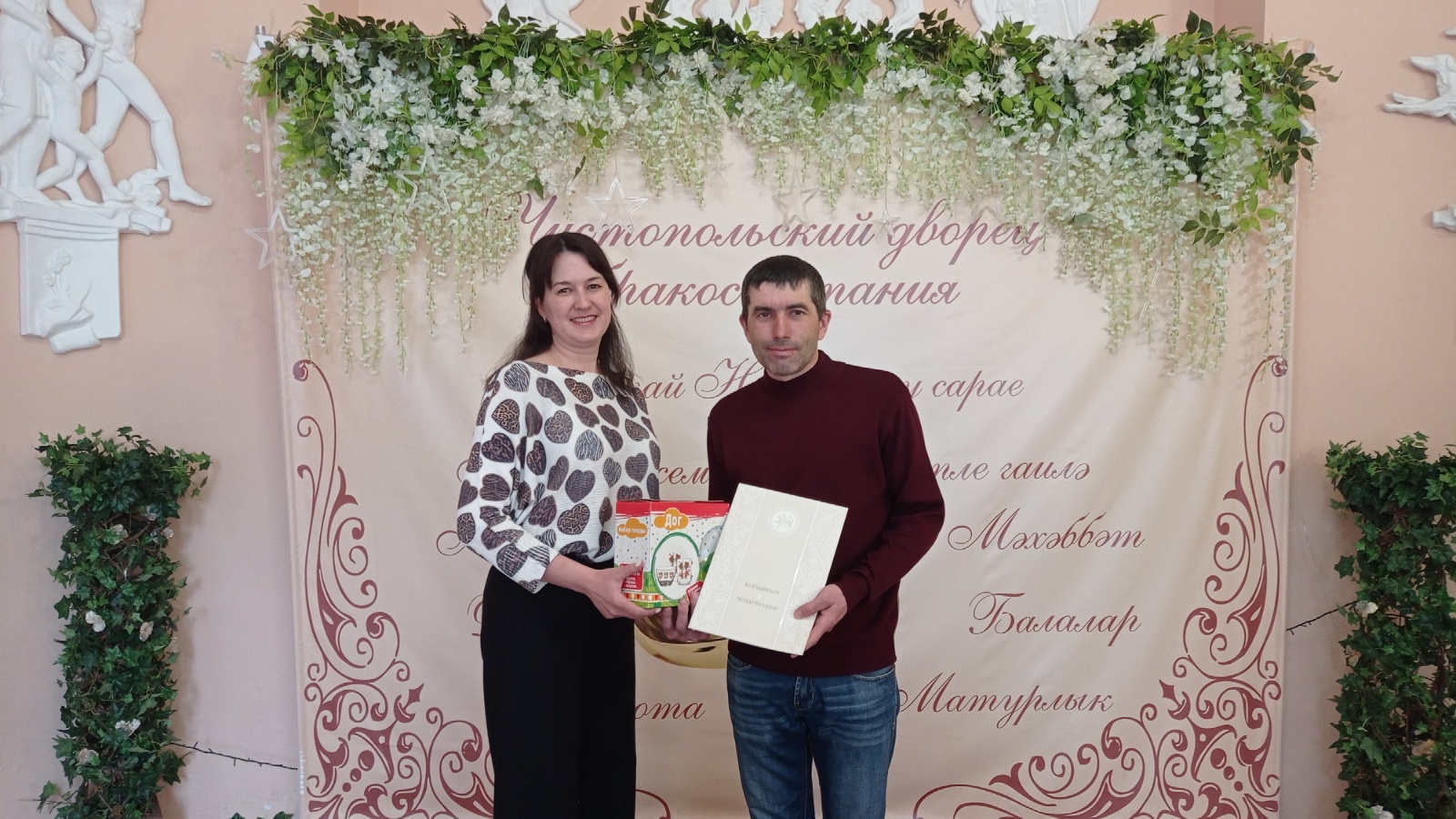 ГХАТ бүлеге җитәкчесе Илмира Ярмушева Чистай районы башлыгы Дмитрий Иванов исеменнән яңа туган сабыйның әтисен котлады, туу турында таныклык, Татарстан Республикасы Президенты Рөстәм Миңнехановның котлау открыткасын һәм истәлекле бүләк тапшырды. Зур һәм тату гаиләгә чын күңелдән иминлек һәм бәхет телибез!