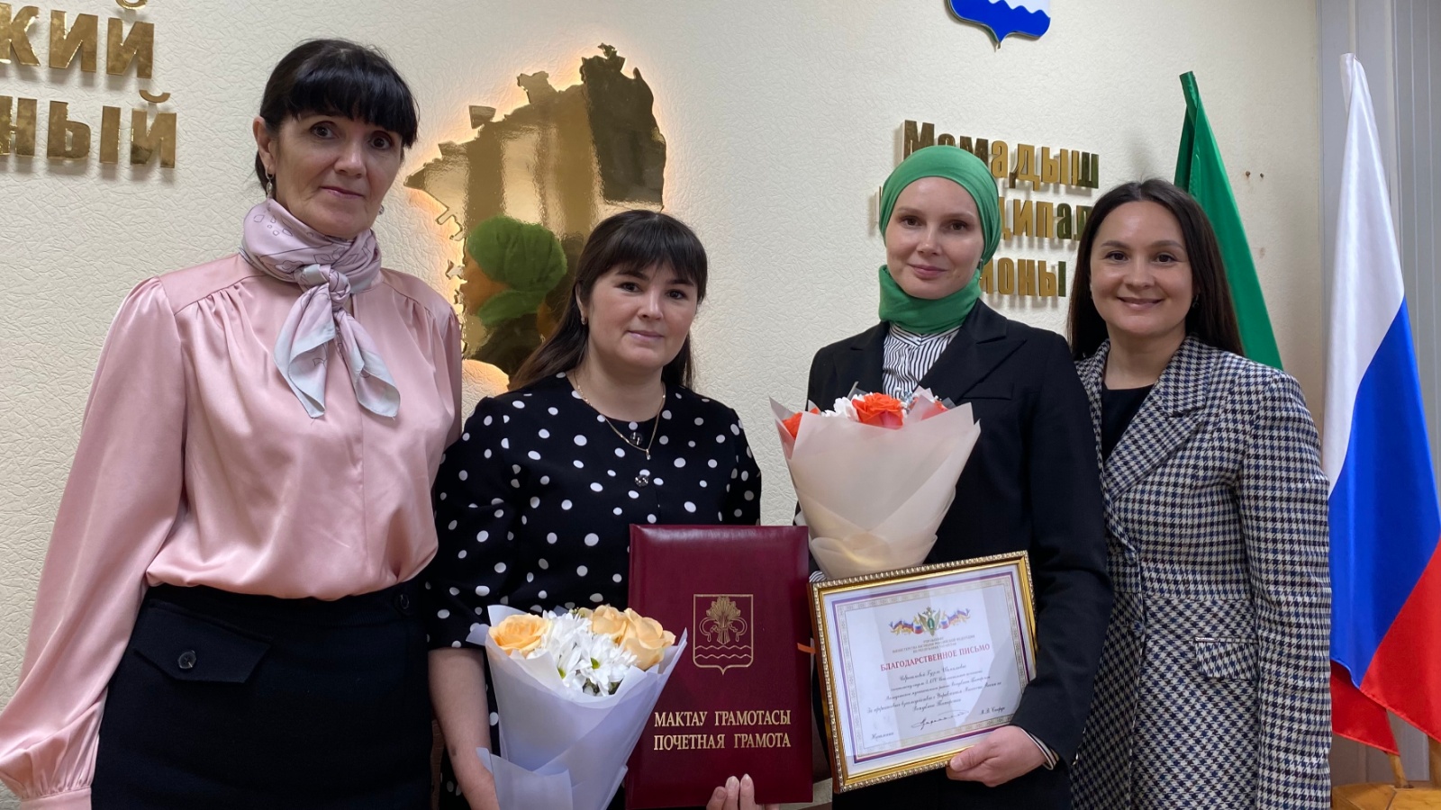 Гүзәл Ибраһимова юстиция Минситрлыгы рәхмәт хаты, Ландыш Хәкимова район башлыгы Мактау Грамотасы белән бүләкләнде.