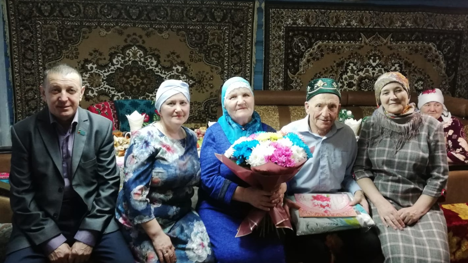Юбилярларга Тәтеш муниципаль районы Башлыгы Рәмис Хатыйп улы Сафиуллов исеменнән котлау хаты һәм истәлекле сувенир тапшырылды. Парларны котлыйбыз һәм аларга актив озын гомер телибез!