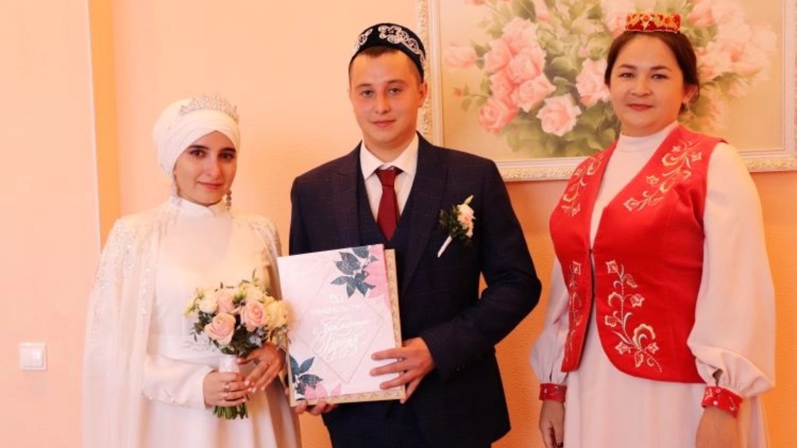 Яшь гаиләгә ГХАТ бүлеге җитәкчесе Чулпан Камалиева Язылышу таныклыгы тапшырды һәм Гаилә көне уңаеннан тәбрикләү сүзләре җиткереп «Татар милли ашлары» китабын яңа гаиләгә бүләк итте.