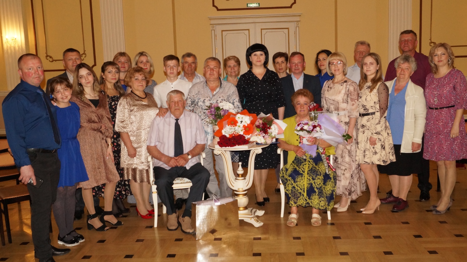 Бөгелмә муниципаль районы башлыгы исеменнән гаиләне шәһәр мэры урынбасары Ирина Белова котлады, ул Бөгелмә шәһәренең Мактау билгесен һәм котлау хатын тапшырды. Юбилярларны «ТНГ - Групп» һәм В.Д. Шашин исемендәге «Татнефть» ГАҖ вәкилләре җылы котладылар.