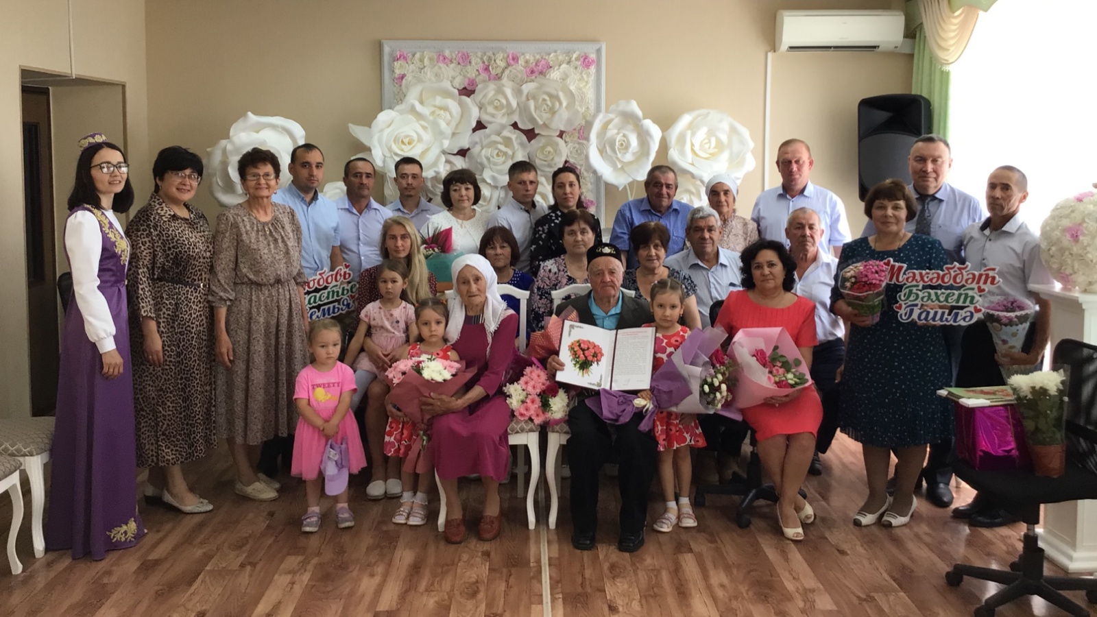 Арча муниципаль районында озак еллар бергә яшәгән парларны тәбрикләү инде күркәм традициягә әйләнде. Юбиляр гаиләләр яшьлекләрендә насыйп булмаган тантаналы шартларда гомер бәйрәмен уздыра, Дан китабына кул куя.