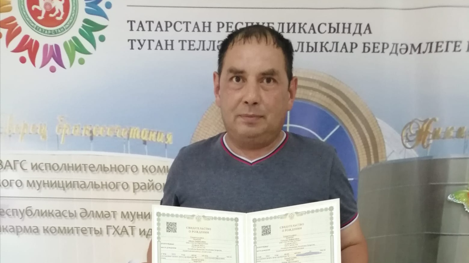 ГХАТ Идарәсе белгечләре бәхетле ата-ананы котлап әтиләренә балаларның беренче дәүләт документларын – туу турында таныклыклар һәм Татарстан Республикасы Президенты Р. Н. Миңнехановның котлау хатларын тапшырдылар.