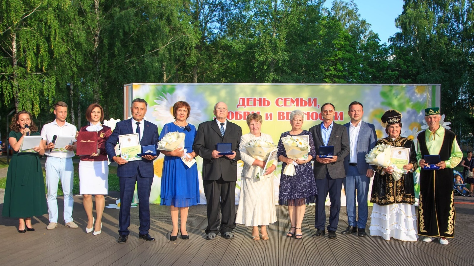 Шәһәребезнең «Гаилә» ял паркында Гаилә, мәхәббәт һәм тугрылык көне уңаеннан узган бәйрәмнең тантаналы өлеше түбәнкамалылаларны амфитеатр тирәсенә җыйды.