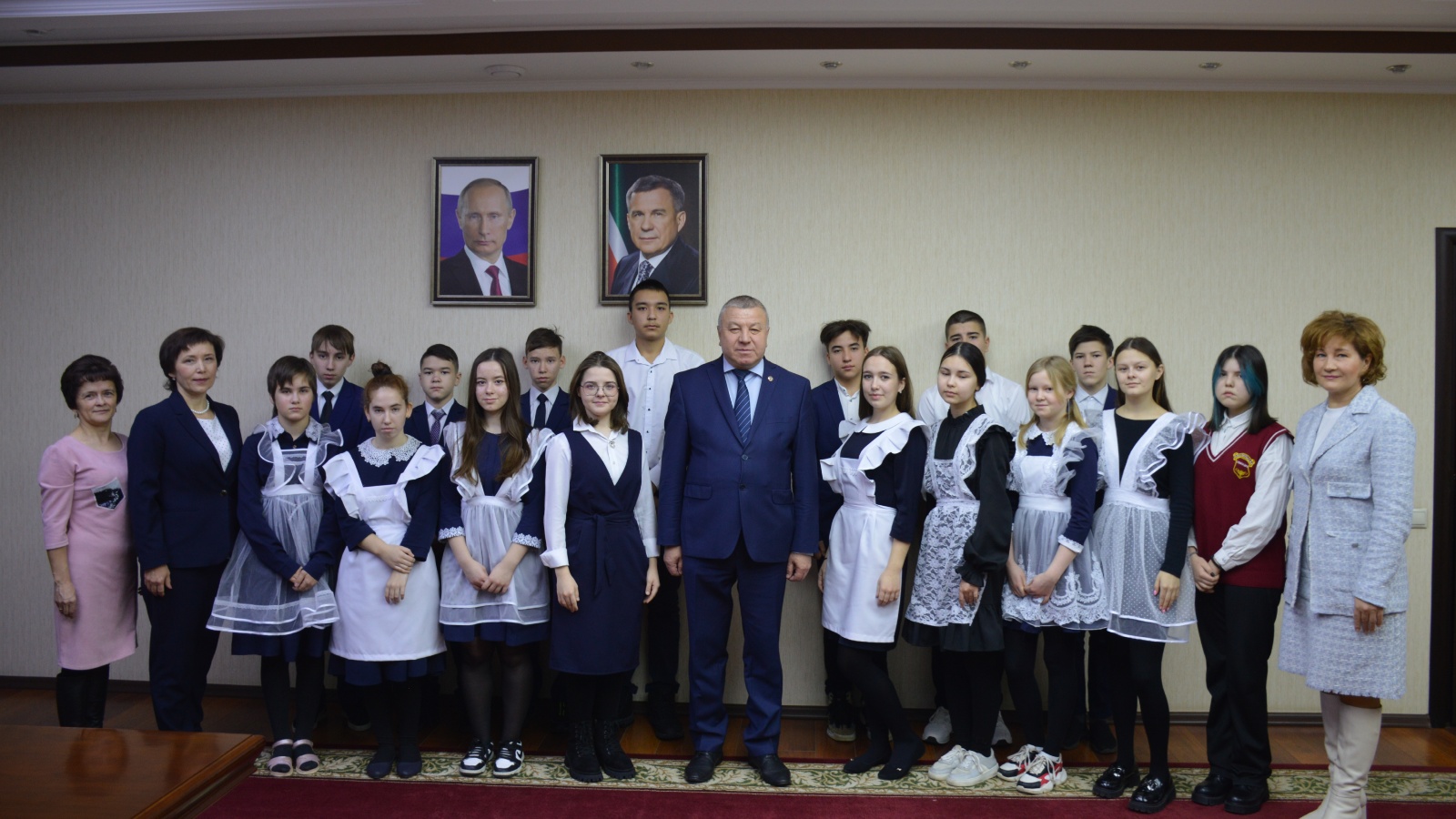 Видеоконференция режимында республика һәм ведомство утырышлары уза торган кече утырышлар залын күрсәтте. Укучылар Район башлыгына үзләрен кызыксындырган сорауларны бирделәр, аларга Фәрит Мөнәвир улы бик теләп җавап бирде. Ул билгеләп үткәнчә, тормышта максатлар кую һәм күп эшләргә кирәк. Балаларга уңышлар, сәламәтлек һәм ныклы дуслык теләде.
