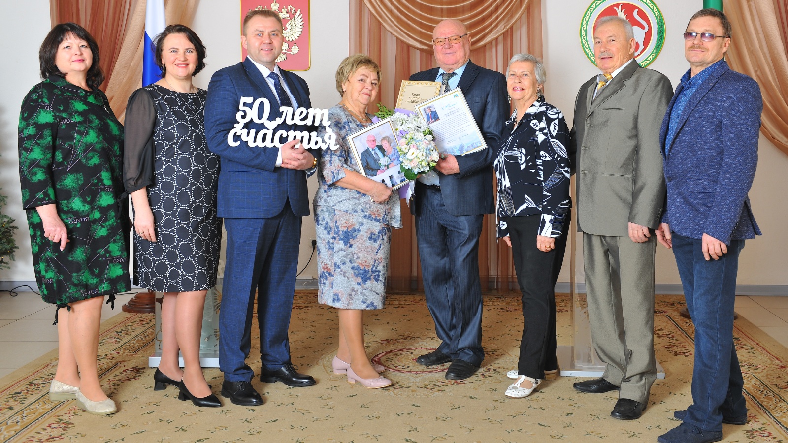 Николай Романовичны һәм Любовь Ивановнаны чын күңелдән никахының 50 еллыгы белән котлыйбыз. Алтын туйга бер-беребез өчен «алтын», шулай ук шатлык һәм күңел сагыну телибез. Филиповлар гаиләсенә нык сәламәтлек, бәхет, муллык һәм тынычлык телибез!