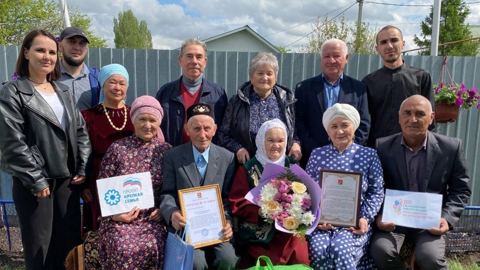 Халыкара гаилә көнендә, «Ныклы гаилә», "Гаилә-тынычлык нигезе" проектлары һәм Милли мәдәният һәм традицияләр елы кысаларында Сарман районы башлыгы Фәрит Хөснуллин Сопбух һәм Гөлсинә Гыйбадуллиннарны Бриллиант туйлары белән котлады. Юбилярларга Башкарма комитеты җитәкчесе урынбасары, районның Хатын-кызлар Советы рәисе Индира Сәхипова, ГХАТ бүлеге җитәкчесе Гөлчәчәк Вәлишина, Сарман авыл җирлеге башкарма комитеты җитәкчесе Лилия Шәрипова, ветераннар Советы рәисе Асыляр Харисов туганнары һәм якыннары үзләренең изге теләкләрен җиткерделәр. Юбилярларга муниципаль район Башлыгының Рәхмәт хаты һәм истәлекле бүләкләр тапшырылды.