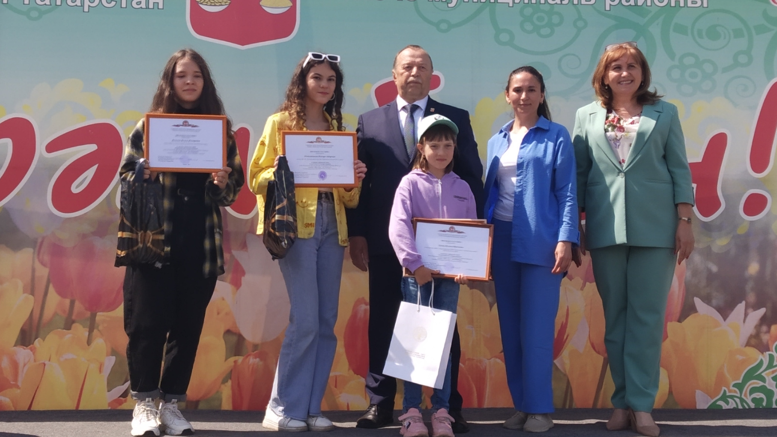 Әлеге бәйрәмдә балалар рәхәтләнеп аркан тарттылар, капчык киеп йөгерделәр һәм башка кызыклы уеннарда рәхәтләнеп катнаштылар.