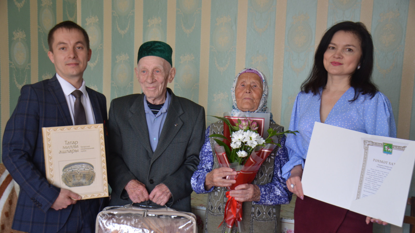 ГХАТ башлыгы Гайфуллина Гөлнара һәм Әгерҗе районы башкарма комитеты эшләре идарәчесе Марс Гатауллин юбилярларны истәлекле көннәре белән тәбрик итеп, Әгерҗе районы Башлыгы вазифасын башкаручы Ямалиев Илфат Ильяс улы исеменнән котлау открыткасы һәм истәлекле бүләкләр тапшырдылар.