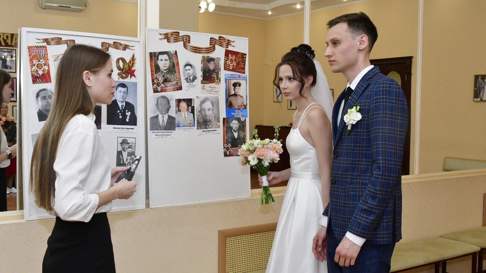 Казан шәһәре ГХАТ идарәсенең Идел буе районы бүлегендә, Җиңү көне бәйрәме алдыннан, яшь парлар һәм аларның кунаклары «Хәтерлибез, горурланабыз!» исемле стенд төзүдә катнаштылар. Никахлашуларын дәүләт теркәве алдыннан яшьләр стендка Бөек Ватан сугышында катнашучы туганнарының фотоларын урнаштырдылар. Барлык яшь парларга Георгий тасмалары тапшырылды.