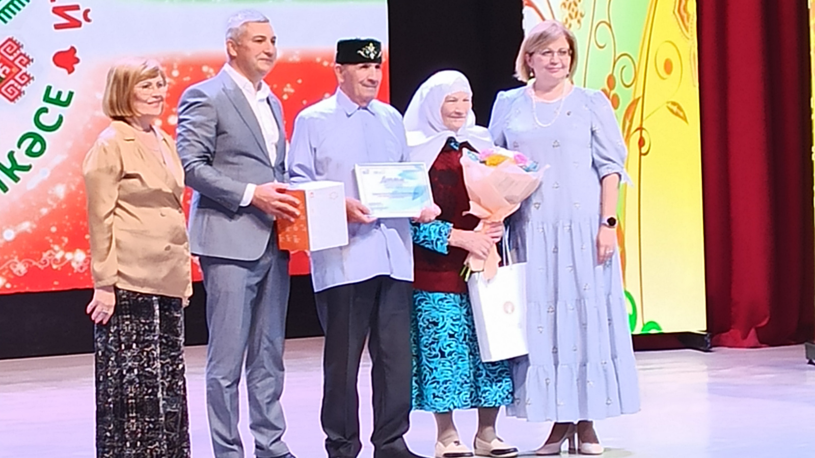 Мөслим районында узган “Нечкәбил” республикакүләм матурлык конкурсының зональ сайлап алу туры кысаларында, гаиләләренең бриллиант юбилейларын билгеләп үтүче Әзһәм һәм Фәгыймә Садриевлар, шулай ук гаиләләренең алтын юбилеен билгеләп үтүче Илфак һәм Фануса Юнысовлар тантаналы рәвештә тәбрикләнде.